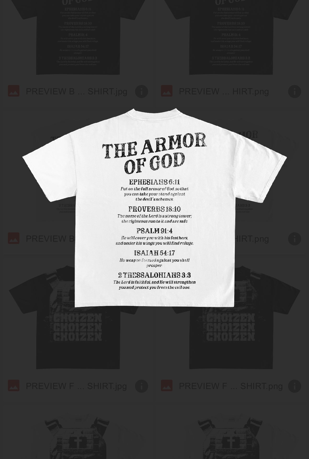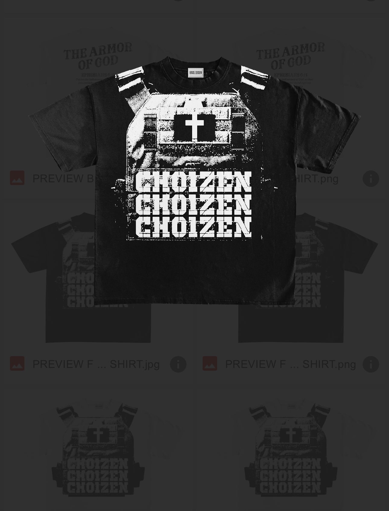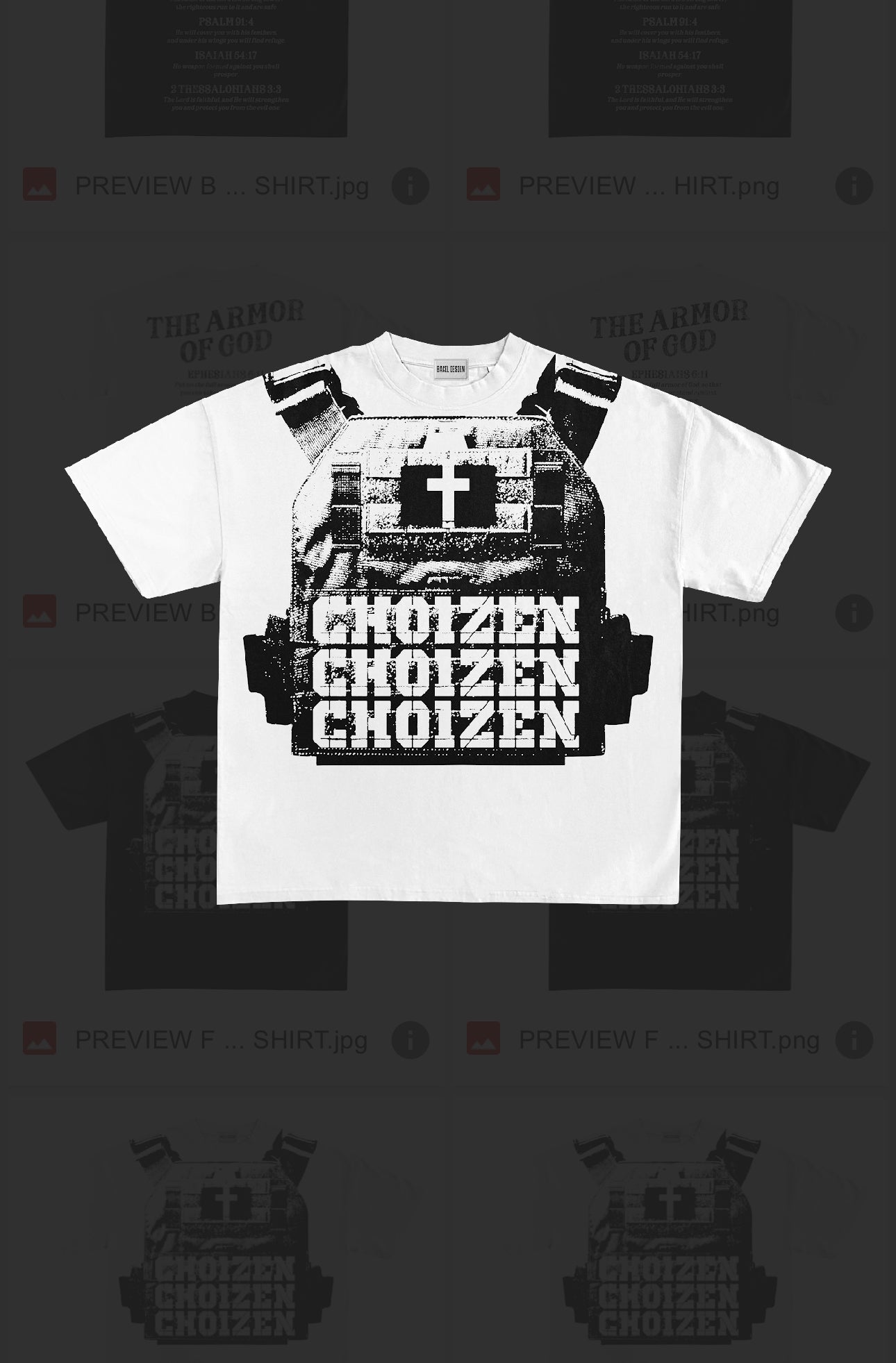 In a world where battles aren’t always visible, protection isn’t optional—it’s essential. The Armor of God tee by CHO1ZEN is more than fabric and ink—it’s a declaration. Inspired by Ephesians 6:11, this design reimagines spiritual readiness through the language of street culture. The tactical vest symbolizes resilience; the cross and scripture mark divine covering. Every verse on the back is a weapon of faith, a shield for your soul. You’re not here by accident. You are set apart. You are CHO1ZEN. Put on your armor. Step into your calling.